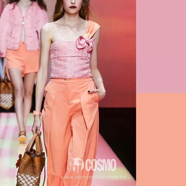 浅粉色和蜜桃色的搭配有一种热带的感觉,热情洋溢,但低饱和度则让它们相比激情更多了几分平和。两个颜色都是今年的流行色,搭配起来也是满满夏日感觉。