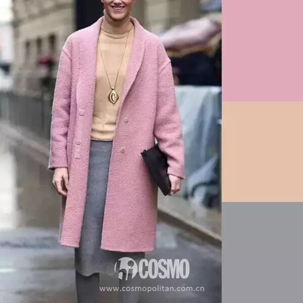 浅粉色和裸色、灰色的搭配也是非常优雅别致的一组配色,裸色和灰色中性百搭的气质通过粉色来引导出一种浪漫优雅的感觉,整体感觉流畅又舒服。