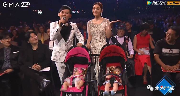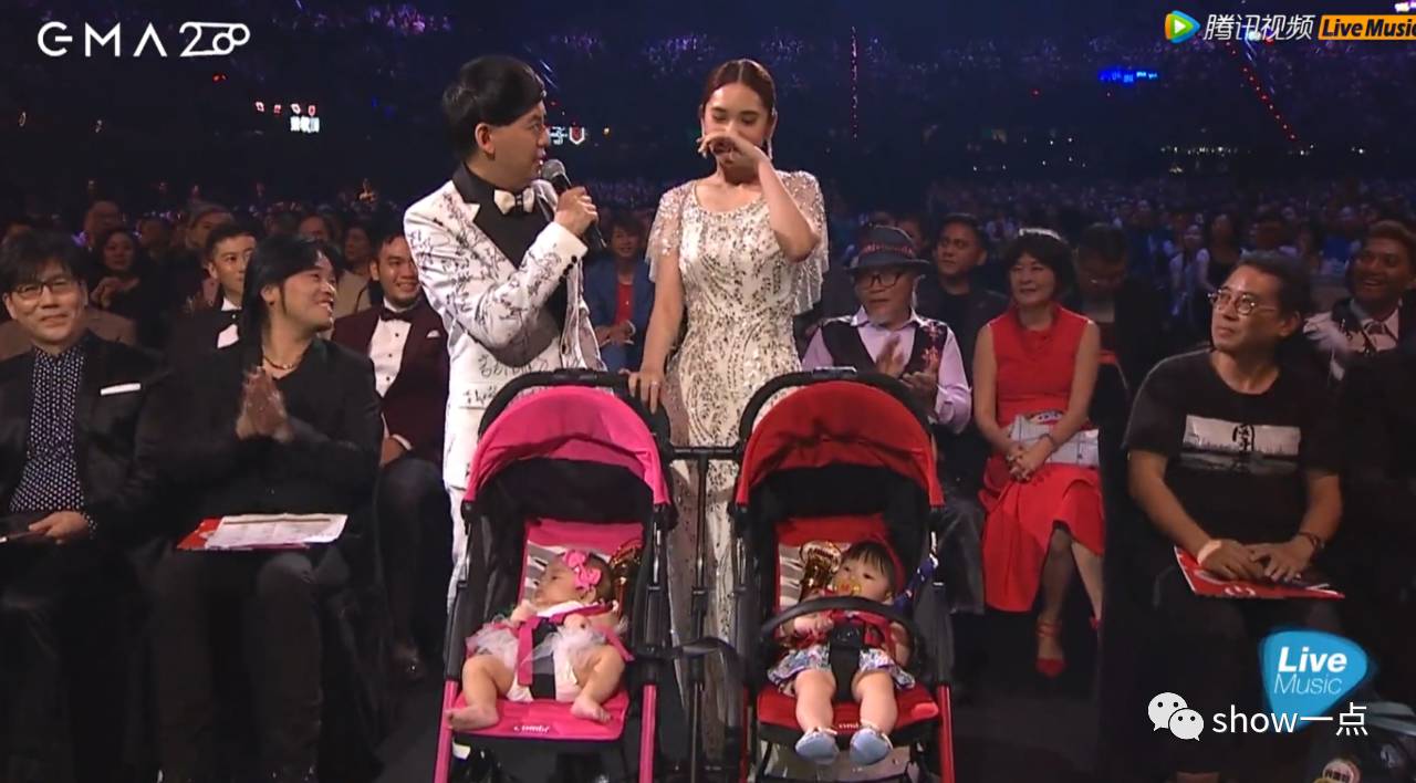 歌手罗文裕表演的时候,两个未满一岁的小孩直接被推到现场。黄子佼就招呼杨丞琳过来照顾,说:“来啦来啦,你迟早要经历的啦。”