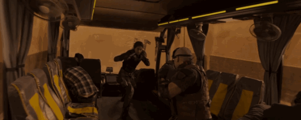看起来惊险刺激,但细看克里斯各种高速跳车,摔打的戏码,完全沦为了近些年《速激》的操作。