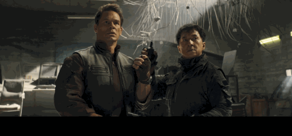 可以说,《狂怒沙暴》里,两人的对手戏有着明显的模仿当年《尖峰时刻》的影子,双主角合作,中西方文化调侃,两人各种嘴炮。