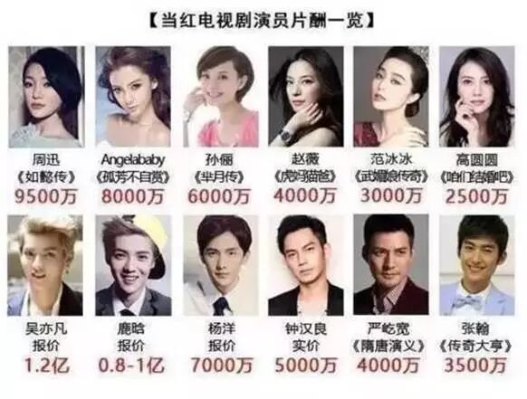 明星高片酬引发演员荒!赶快看看当红影视演员片酬有多少?