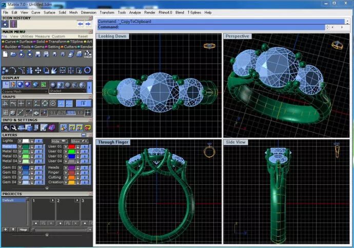 Matrix也是在Rhino的基础上开发出的首饰CAD软件,在欧美地区,Matrix是一款使用十分广泛的计算机辅助设计软件。英国第二大珠宝生产商Weston beamer是其忠实用户。