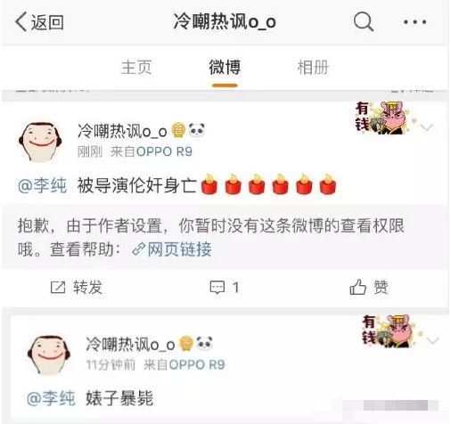 那么问题来了,李纯是如何发现自己被人diss的,莫非她也也有平时没事儿在微博搜自己的名字的习惯?