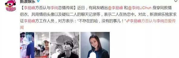俩人之间的一切巧合真的只是巧合而已,还有那个手机聊天页面的图片,说实话还真不能证明那就是李易峰在和李纯聊天,毕竟出处不详。