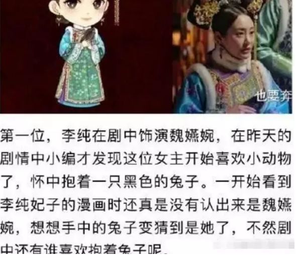 而且在《如懿传》里面李纯也喜欢怀抱着一只兔子,按照正常剧情设定大可不必如此,但是李纯却透露过自己很喜欢小动物。