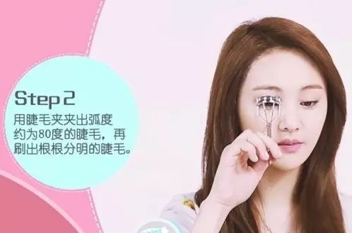 步骤五:郑爽的这款少女妆睫毛是关键,不需要浓密纤长的夸张睫毛,实用睫毛夹,打造出睫毛的弧度,然后刷上睫毛膏定型就ok了!
