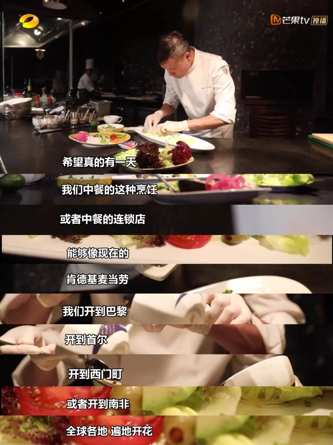 “我的理想就是,希望真的有一天, 我们中餐的这种烹饪, 或者中餐的连锁店, 能够像现在的肯德基麦当劳一样, 我们开到巴黎,开到首尔, 开到西门町,或者开到南非, 全球各地,遍地开花……”
