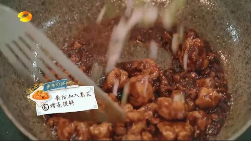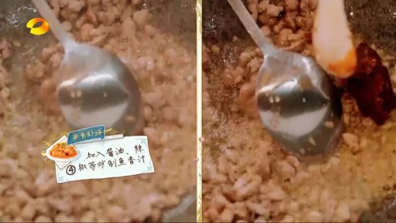 第四步:加入酱油、辣椒等炒制鱼香汁