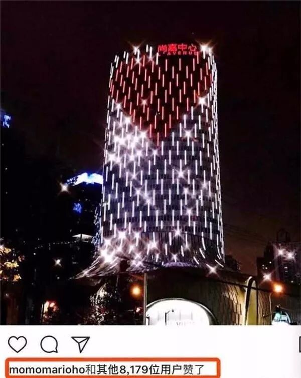 去年奚梦瑶在个人社交网站上晒出一张大厦的照片,大厦的LED外墙上,亮起一颗巨型红色爱心。