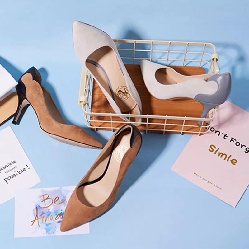 ▲麂皮拼羊皮高跟鞋¥1280 汉光会员9.5折后¥1216