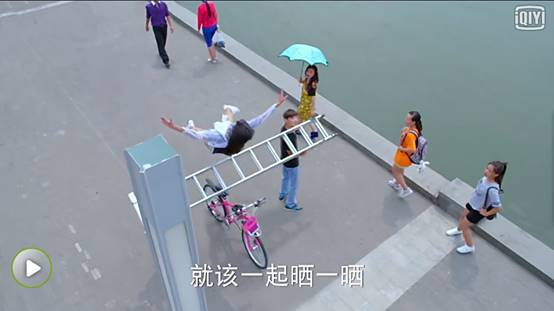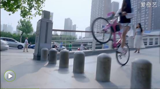 首先,这个柱子之间的距离,其实自行车是可以过的,然而为了强行给女主角加光环,竟然灰过去了……灰过去了……还是空中360度托马斯旋转……