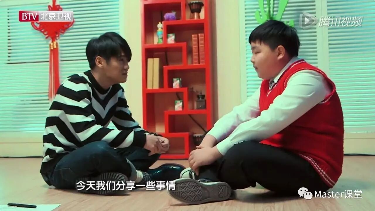 曹格老师在教唱自己的学生吴子安的过程中,虽然小子安的身高已经比曹格老师矮不了多少,但是为了能与小子安更接近更好地沟通,曹格老师选择了与小子安一起坐在地板上授课,在一个高度和水平线上的交流,让两人的关系更为亲密,让心贴的更近。