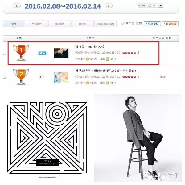 2月17日,根据C-Jes娱乐消息,男团JYJ成员金在中的第2张正规专辑《NO.X》夺得了Synnara专辑销售周冠军。 2月12日0时,第2张正规专辑《NO.X》正式发布。该专辑收录了包含硬摇滚、蓝调、抒情等多种曲风的歌曲共计12首,经过了半年多时间的准备,金在中本人直接为两首歌曲作曲同时还参与了9首歌曲的作词,倾注了自己的心血。发布当时,主打歌《Love you more》曾夺得韩国国内音源榜以及iTunes排行榜的榜首。此外,《Breathing》、《Good morning night》、《Blame》、《Good Luck》等歌曲也都反响良好。金在中本人虽然身在军营,如此强大的竞争力还是不得不让人赞叹。 另外,金在中于去年3月31日入伍,现在第55师团军乐队服兵役,预计2016年12月30日退伍。