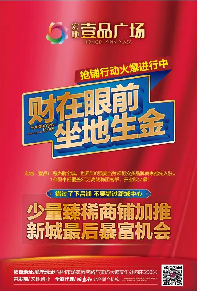 宏地·壹品广场占据温州新城中心绝版地段,毗邻中央政务区、紧邻中央绿轴、地处文教中心、借势立体交通中心、雄踞繁华商业中心、辐射高端居住中心,六大中心价值为铺王加冕!