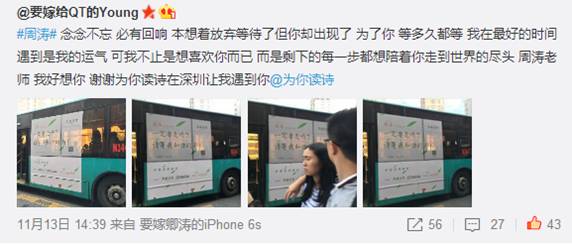 她拍到的是周涛为你读诗的诗歌巴士,“一定要走吗?请等我和你同行”。让我们一起来看美美哒的图吧~