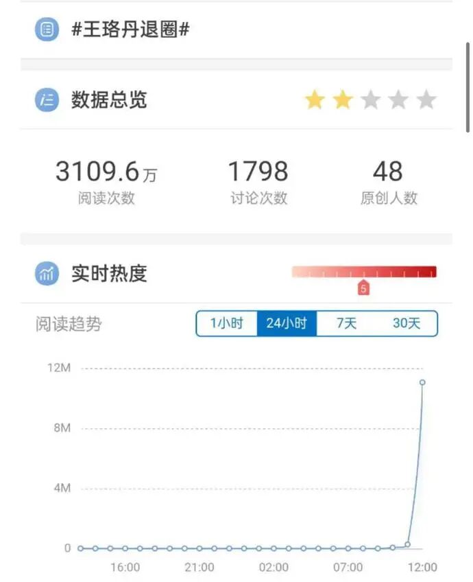 出于好奇,桃仔点进去看了一眼#王珞丹 退圈#的热搜数据。