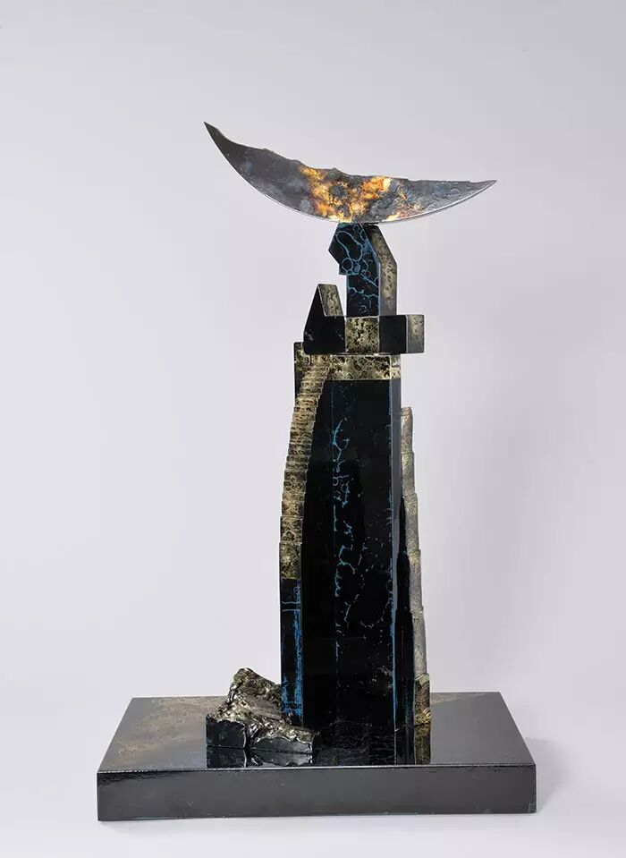 《伸向夜空的阶梯》 三田村有纯 金粉、漆、木材、颜料 44cm×23cm×73cm 2011年