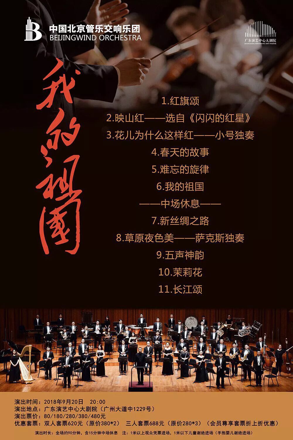北京管乐交响乐团《我的祖国》交响音乐会精选了中国现当代各个时期脍炙人口的经典曲目。10余首耳熟能详的乐曲,或激情澎湃,或舒缓悠扬,演绎中国式情怀。9月20日国庆到来之际,带上父母聆听民族经典之声,在旋律中重忆芳华。
