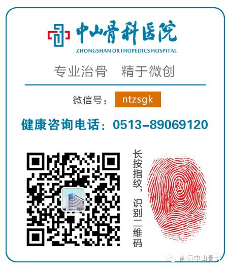 患者至上,厚德仁心,添加微信号【ntzsgk】 关注更多骨病健康知识、了解更多骨病专家信息、快速预约著名骨科专家,赶紧订阅中山骨科医院的官方微信“南通中山骨科”。