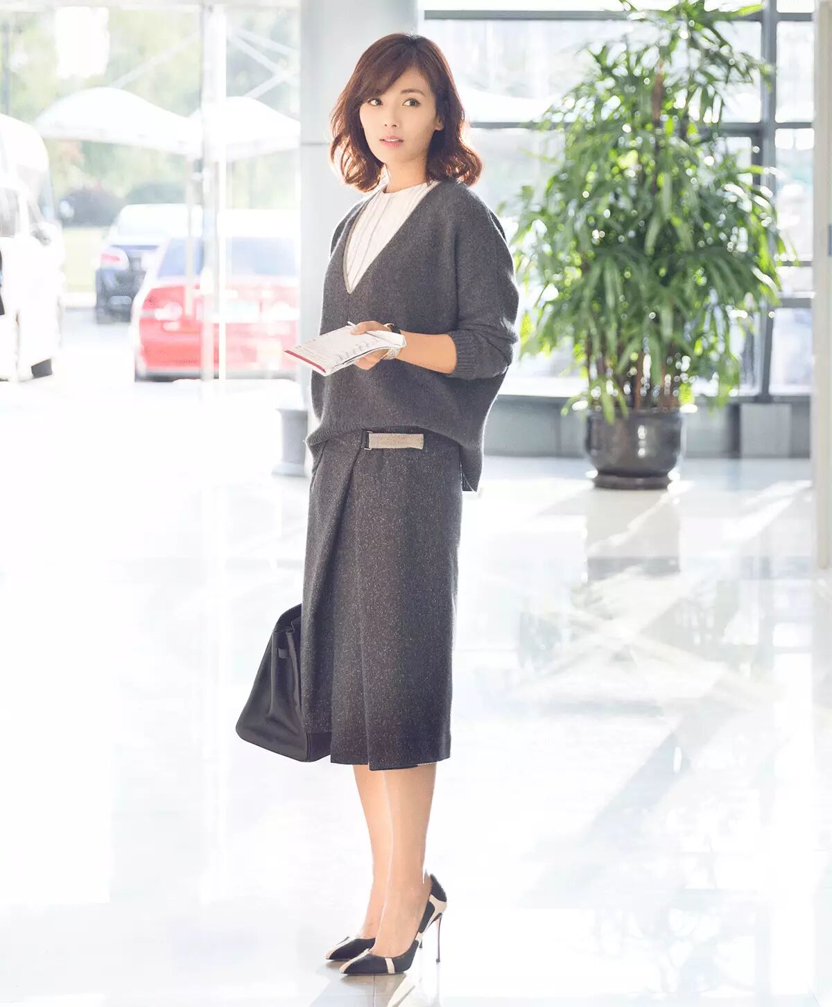 乔菲的搭配更适合初入职场的女孩们~青春又不失端庄~宽松一些的A字裙和及膝连衣裙是不错的选择