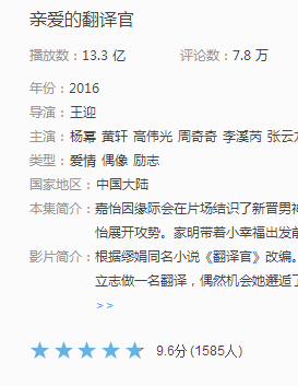 《欢乐颂》火完当仁不让的接档剧就是《翻译官》了~小编每天都要追,虽然在剧情和人设上一片吐槽声,但是还是抵挡不住它火爆的收视率和居高不下的讨论度~