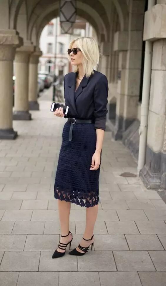安迪偏向于选择过膝的修身款式~乔菲的选择就比较年轻化~多是膝上短裙或者是版型宽松的连衣裙~如果喜欢安迪的风格就可以选择铅笔裙噢