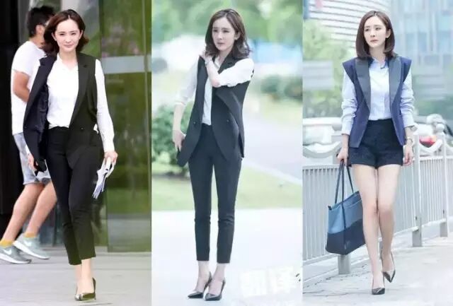 对比一下~大家会发现安迪更喜欢穿短款收腰的小西装,而乔菲则更多选择的是西装马甲和套装。安迪选择的收腰马甲看起来精气神十足~干练腿长走路还带风!