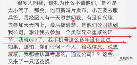 还解释了自己退出组合的原因——因为其他四个人不想跟他合作了,却还在外面装作兄弟情深。