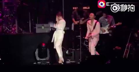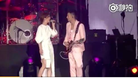 又或者在舞台上唱着对方的歌,隔空表白感情~李荣浩借机演唱杨丞琳的歌《左边》,间接秀恩爱!