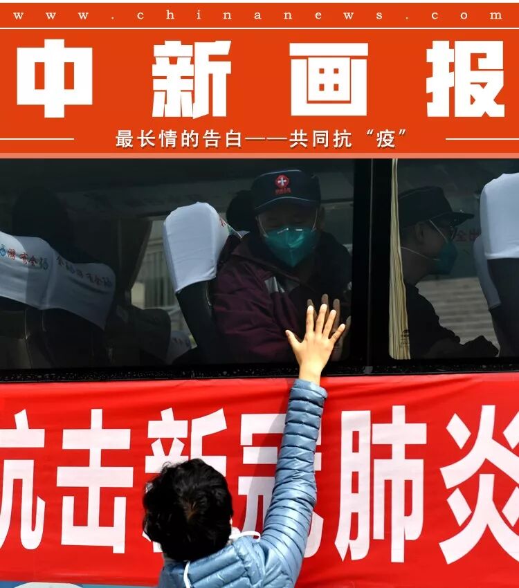 2月12日,浙江杭州,出征湖北荆门的医护人员和亲友一同比心。