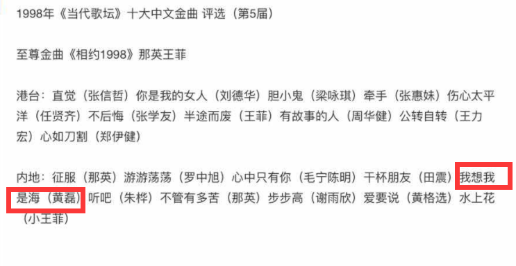 1998-1999年《当代歌坛》人气榜上,黄磊多次位居第一名。