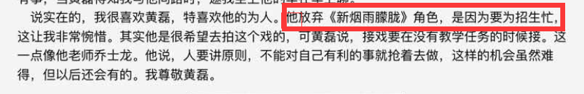黄磊推掉,是因为时间不允许,他要在北电忙着艺考招生。