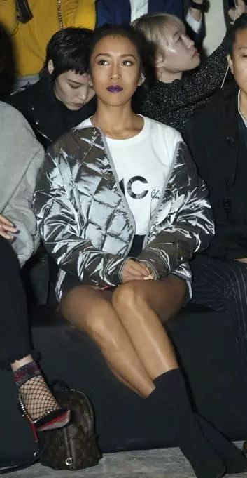 高挑的吉克隽逸,一身墨绿色长外套气场超强。内搭黑色背心,镂空的设计,非常性感,搭配粉色半身裙,显瘦显高两不误!
