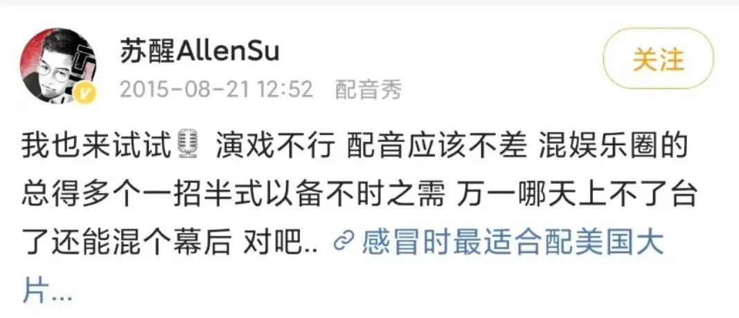 练口语,关键还是得开口说,主页君在“考古”苏醒白历史的过程中,发现了这位英语大牛居然也爱发英语配音秀!