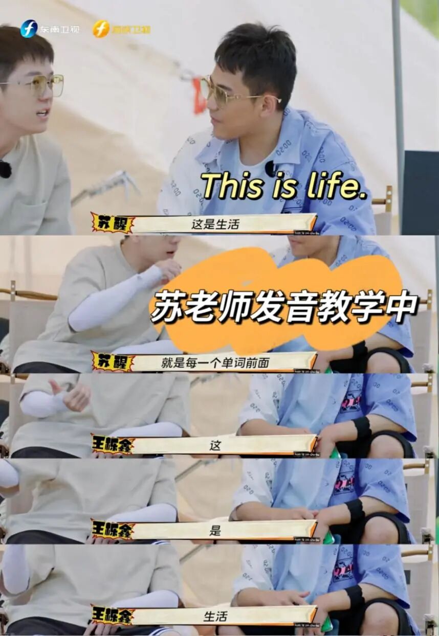 在最近爆火的节目《快乐再出发》中,苏醒也不吝给他的朋友们“开课”分享一些英语小知识。