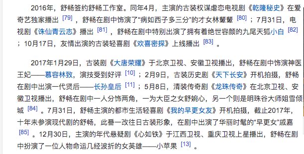 恋情曝光却无热搜,舒畅为什么不红了? 会火 内地女星 2019-12-30 21:30:33 1173 创作不易,用心坚持,欢迎请BaGua喝几杯爱心咖啡!打赏并支持本文 打赏并删除本文 娱乐圈被拍曝光恋情的明星数不胜数,但像舒畅这种,没什么骂声的,还真是少数。近日,舒畅被拍到与陌生男子同行、吃饭、回到酒店,疑似恋情曝光。男子长这样,年纪疑似30+。按照营销号的描述,两个人吃了火锅,这个大概30多岁的“中年男子”是个有钱人。两人吃过饭后,又去了KTV,一直呆到凌晨五点多,随后牵手上车回酒店。这个营销号估计也没想到,自己会被一顿骂。不过看营销号的话术,确实是居心叵测。形容这个男的为“30几岁的中年人???”窒息了,那明明是青年,不要老是刻意引导女明星和年纪大的人谈恋爱好吗。还有就是一直在渲染这个男的很有钱,又是腕表价值不菲,又是长相十分富态。听我说句良心话,明星一般都有钱。人家有钱的明星不和有钱人谈恋爱,和你谈恋爱吗?最后评论区破案了,这个男的是个导演,拍过《大唐荣耀》《听雪楼》等作品。长相也对得上。真的不是胖了的钱枫。评论区很多人都对这段疑似的恋情没啥异议,想象中的女明星傍大款,女明星吃小鲜肉等声音也没出现。不少人说她们俩很般配。因为舒畅也才32岁,32岁的女明星和30多岁的青年,太般配了吧。等等,舒畅才32岁?我上小学的时候看她演的电视剧,我都25了,她才32?我刚百度了一下,舒畅的确是87年生人,也就32岁……感觉我被魔幻手机改变了时间流速……话说回来,舒畅这几年真的挺低调的,大家看到小时候喜欢的演员有了恋情,第一反应除了恭喜也的确没啥可说的。但其实去年舒畅就曾被曝光过领证结婚。但没实锤,也没有正主回应。希望这次舒畅是真的有了甜美爱情。说到舒畅本人,确实很低调,当然低调的代价也是有的,那就是她真的没什么人气,恋情曝光这么久也没热搜。大家几乎快忘掉这个人了。网上关于舒畅最多的疑问是,舒畅为什么不红了。接下来我们聊聊这个话题。事实上,任何人成年后的选择,都与成年前的环境有关。舒畅虽然5岁开始演戏,算是名符其实的“老戏骨”,从小就崭露头角。但其实舒畅的童年并未有想象中幸福。舒畅出生于吉林,从小父母离异。于是她和妈妈辗转去北京生活。只是遗憾的是,妈妈在她10岁的时候生病去世。爸爸不管她,于是她跟着姨妈生活。很多年后舒畅接受采访时表示,其实对爸爸是有恨意的,因为爸爸在她最难的时候没有出现,反而在她已经红了之后才联系她。寄人篱下,哪怕是很亲的亲人也会有割裂感。穷人家的孩子早当家,讲的是承受了太多苦难,自然根骨成熟的要早。挺无奈的一件事。舒畅从小成绩就好,不惹事,很乖,读中学时,三次获得年级第一,甚至还保持了数学第一的记录。是个好学生,不仅学习好,表演唱歌样样精通,长得还好看。以至于她5岁的时候就被导演发现,就说有多可爱吧,导演在照相馆看到了她5岁拍的照片,就找到了她。于是她5岁就拍了人生第一部电视剧《我的故事》。然后因为拍了电视剧,又被电影导演看中,拍了电影《小巷情深》。怎么说,就是老天爷上赶着把演员这碗饭捧到她面前,死活要她吃。不仅会演戏,歌还唱得好,参加各种比赛,拿各种奖,然后10岁那年还发了自己第一张专辑《少了妈妈只有半个家》,还卖了十万张。舒畅10岁的时候,就拍了四五部戏,拿了不知多少奖,还主持过大风车。现在很多人说舒畅为什么不红了,但其实人家10岁就已经全国范围内有热度了。如果说10岁的舒畅是小孩子们的榜样,那么15岁的舒畅,估计会被现在的小花嫉妒地咬牙切齿。舒畅15岁的时候,出演了尤小刚导演的清宫剧《孝庄秘史》。没人能想到,15岁的舒畅能把一个后宫嫔妃的哀戚演的那么到位。没受过专业训练,纯凭天赋,舒畅在15岁其实就已经做到了其他人的极限。隔年她又出演了《金粉世家》的八妹。天真可爱让人记忆犹新。这放到现在,也算是好资源了吧。基本上15岁的舒畅,就已经算是家喻户晓了。更绝的是,在当年年末,舒畅不走寻常路,在《天龙八部》中还饰演了天山童姥。挺大胆和突破的,从凄美女子和可爱女孩直接转换到疯魔的江湖大佬,她才15岁啊!重点是她还把90多岁天山童姥演得入木三分。三部戏,三个截然不同的角色,被舒畅演活了。你看,她很早很早就做到了别的演员大半生才做到的事。至于后面《宝莲灯》的小玉,国民度基本顶了天了吧,谁没看过。天雷滚滚的《魔幻手机》,虽然很雷,但是小时候觉得可太好看了。试问有谁不想要一个傻妞。还有小精卫,这么数下来,舒畅的代表作真的太多了。《魔幻手机》播出是在08年,那时候舒畅才21岁。现在终于知道为什么知道她32岁我会这么震惊了。因为她真的红的太早了,巅峰太早了。至于后面的10年没怎么有声音,我想一切都是因为舒畅过早地拥有了清晰的自我认识和判断。舒畅很早熟,原因大家也都知道了,家庭因素。舒畅清晰的自我认知最明显的体现是,她在高二的时候就考上了中戏,但没去上,到高三的时候,别人建议她考中戏或北影,她也没同意。要知道,那年她已经拍了《宝莲灯》了。最后她考了北京外国语大学,一个正统的综合类大学。大部分年轻人,不红的往中戏北影挤,红了的更往里挤。只有她往外退。后来她给出的解释是,想给自己留条后路,以后做不了演员,还能凭专业赚钱。这种想