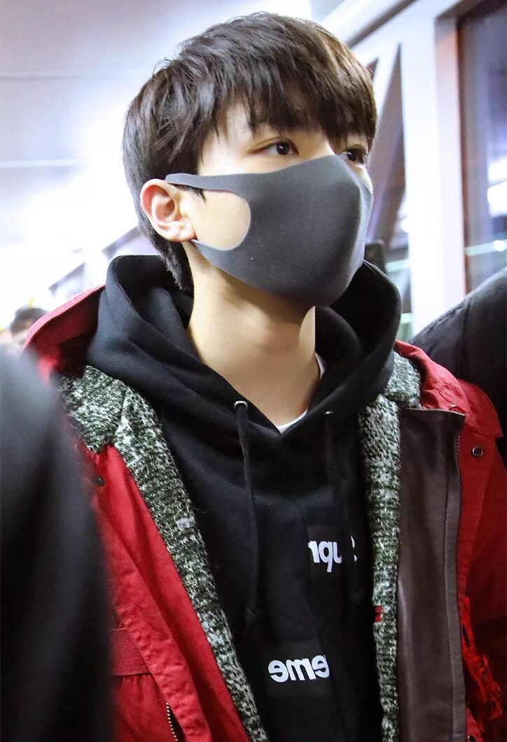 而王俊凯的口罩搭配就显得十分乖巧可爱,卫衣的搭配也使得王俊凯少年气满满~