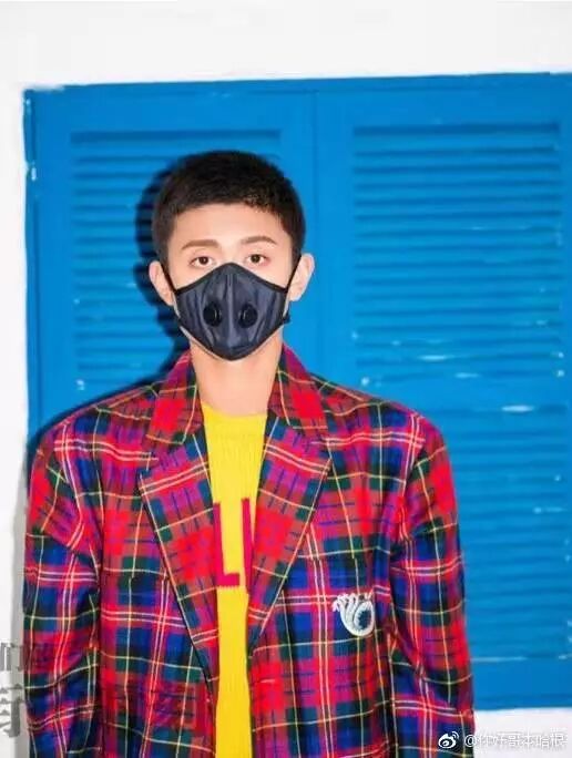 张一山一件红色格子衫搭配口罩,尽显雅痞之气~