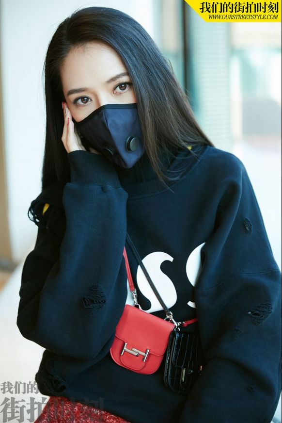 郭碧婷的这身搭配中口罩恰到好处的提升了整体的时尚感,使得这件黑色卫衣显得不那么单调,瞬间变身酷girl~