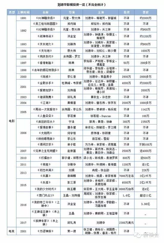 通过统计可以发现,刘德华早期投资的电影,除了《香港制造》和《去年烟花特别多》,所投的都是明星、名导云集的“大制作”,由于这些电影投资大,在内地少有上映,因此票房普遍较低,这也是刘德华投资出现巨额亏损的直接原因。