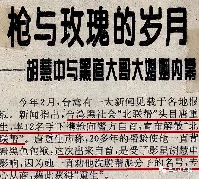 胡慧中和唐重生的过往特别像电影中的桥段,有凄美的爱情,有黑帮大佬至死不渝的爱。