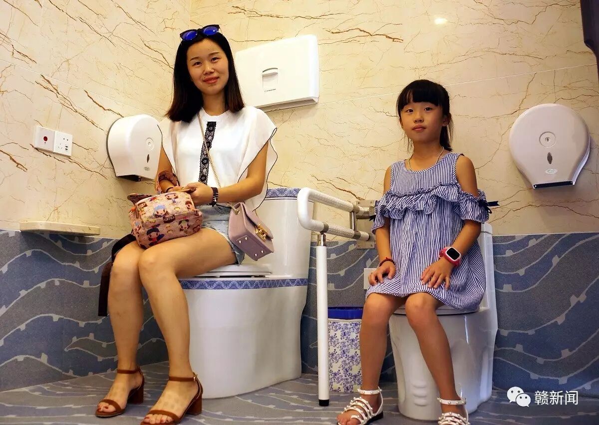 8月1日,一位母亲带着女儿首次走进“第三卫生间”,感受这些设施带来的人性化服务。当日,在国家5A级景区景德镇古窑民俗博览区内,国内首个以陶瓷文化为主题的“第三卫生间”正式启用,为游客提供更贴心更人性化的服务。 王昊阳 摄