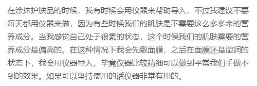令她尤为称赞的是“精华液质地清爽”!足足35ml,不厚重粘油,下料很足又不会太过,不像某些贵气的面膜用,因为太“营养”而造成皮肤负担。妆蕾RAY就刚好满足,涵涵的肌肤状态,既需要补充一定养分,但是也不能滋补到无法吸收。