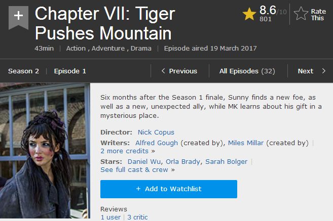 “《荒原》对功夫艺术的深入刻画和惊人视效证明,电视也可以无所不能。我们十分期待这个贵族侠客和刀光剑影世界的回归、和第二季人物更丰富而精彩的故事。”