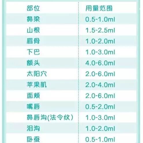 一般来说,玻尿酸是这样的用量范围