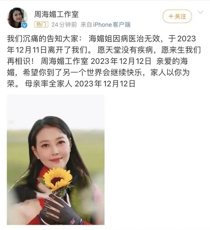 周海媚于2023年12月11日去世