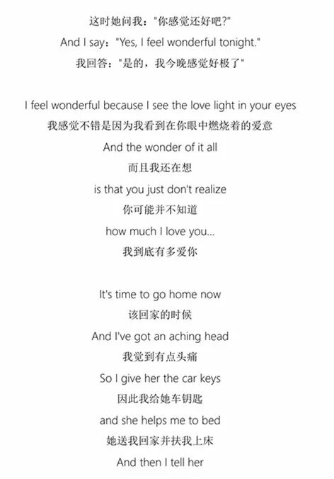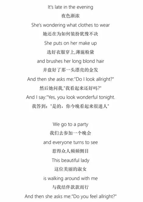 美得令人陶醉的《Wonderful Tonight》 英语教学 欧美男星 2018-01-05 07:04:15 630 创作不易,用心坚持,欢迎请BaGua喝几杯爱心咖啡!打赏并支持本文 打赏并删除本文 点击上面英语教学 ,再点关注后,好微文每天免费、自动收到哦《Wonderful Tonight》Eric Clapton欢迎关注微信公众号英语教学 创作不易,用心坚持,欢迎请BaGua喝几杯爱心咖啡!打赏并支持本文 打赏并删除本文 感谢您的支持鼓励,我会继续努力的!文章地址:用户邮箱:打赏金额:USDT 请输入数字点击”去打赏“,即可进行打赏支持本文章哦 Eric Clapton About the Author 英语教学 功能介绍:提供各种英语学习资源 Related Posts 一生中必听的100首经典英文歌曲,收藏吧! 2019-05-04 11:03:01 适合中学生提升听力的100首经典英文歌,循环听到停不下来! 2018-11-30 09:30:03 20首小众但非常好听的英文歌 2018-11-25 10:39:12 孙燕姿英文版「遇见」,我已经听了几十遍了 2018-10-10 07:54:34 近10年全球最受欢迎的25首英文歌曲 2018-06-25 10:12:36 发表评论