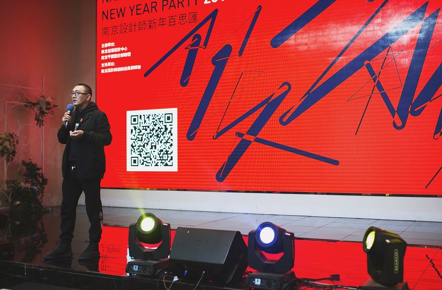 南京平面设计师联盟学术顾问赵清 上台致辞。 他感慨:二十年前因为“平面设计在中国”的机缘,他觉得南京也需要一个自己的平面设计师团体。于是便萌生了组建南京平面设计师联盟的想法。从当初的几人小团队,到现如今百人的大家庭,他感慨万千。