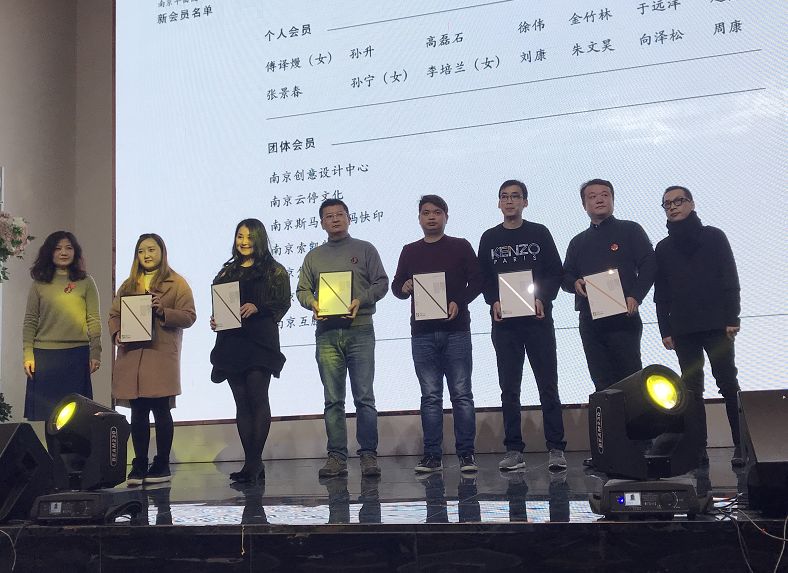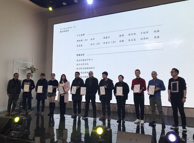 南京平面设计师联盟副主席王坤、南京艺术学院设计学院副院长蒋杰为新会员发放证书。